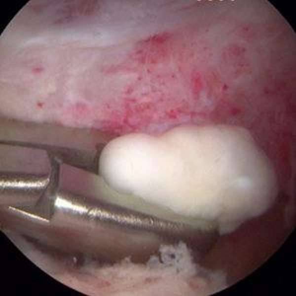 При стабильной форме с небольшим количеством хондромных тел проводят их артроскопическое удаление и частичную синовэктомию переродившейся синовиальной оболочки.