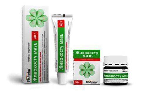 Аптечные мази содержат корни окопника лекарственного, а также ряд вспомогательных веществ, что помогают при ряде заболеваний. Желательно, чтобы мазь назначил больному врач. Обычно цена на такие средства невысока, поэтому лекарство на основе окопника считается общедоступным.