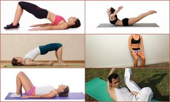 - Улучшает кровообращение в малом тазу, укрепляет мышцы бедра и ягодиц следующее упражнение: лежа на спине, согнуть ноги в коленях, расположив их на ширине плеч, а руки вытянуть вдоль туловища. Опираясь на ступни и плечи, медленно необходимо приподнять таз от пола и зафиксировать тело в таком положении на 30 сек. вернуться в исходное положение, максимально расслабиться. Повторить упражнение 10-12 раз;